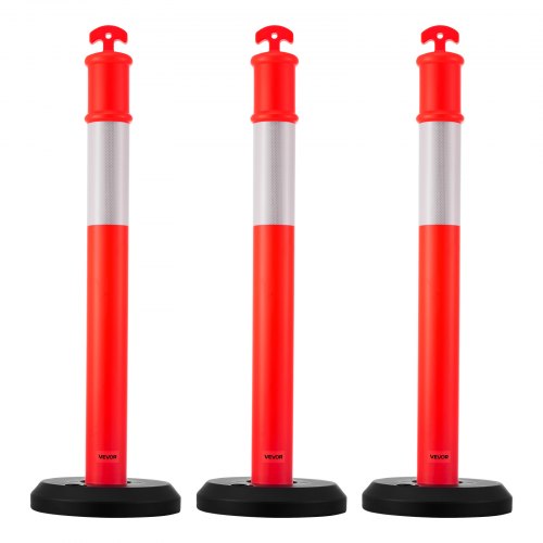 VEVOR Pali Delimitatori di Traffico, 3 Pezzi, Paletti di Sicurezza Stradale da 1140 mm con Base Riempibile e Strisce Riflettenti, Pali Delimitatori Resistenti per Cantieri Edili, Parcheggi, Rosso