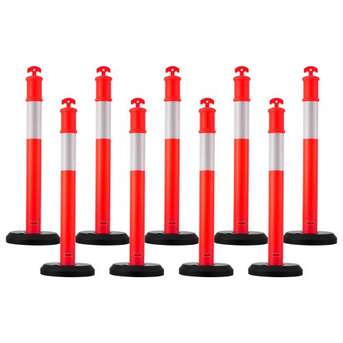 VEVOR Pali Delimitatori di Traffico, 2 Pezzi, Paletti di Sicurezza Stradale da 1140 mm con Base Riempibile e Strisce Riflettenti, Pali Delimitatori Resistenti per Cantieri Edili, Parcheggi, Rosso