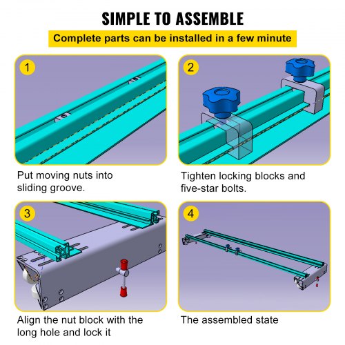 VEVOR Slitta per fresatura, larghezza 60 pollici/152,4 cm, maschera guida per lastra per la lavorazione del legno con funzione di bloccaggio, portatile e facile da regolare
