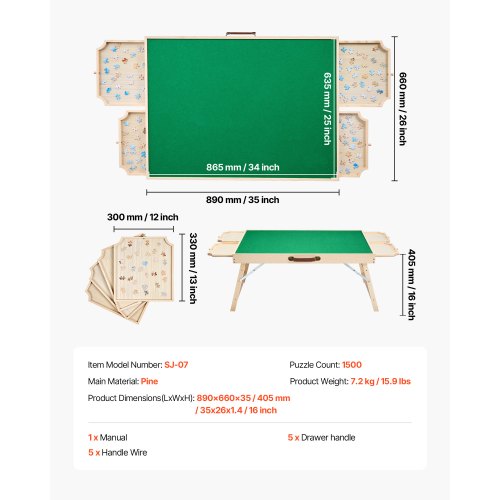 VEVOR Tavolo Puzzle 1500 Pezzi, 865x660mm Tavolo Puzzle 4 Cassetti Coperchio Vassoio Inclinabile Piedi Pieghevoli, Tavola Puzzle 865x660mm con 4 Cassetti, Tavolo Divertimento Puzzle per Adulti Bambini