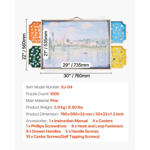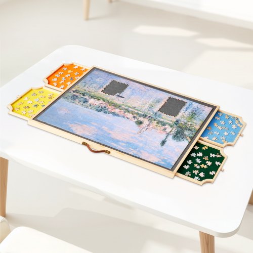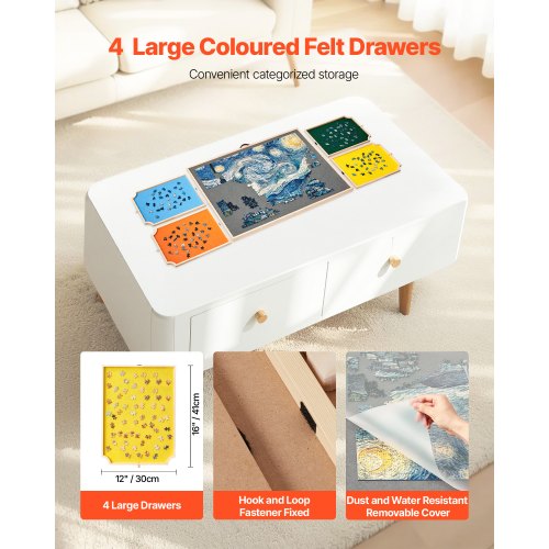 VEVOR Tavolo per Puzzle 865 x 635 mm da 1500 Pezzi, Set da Tavolo per Puzzle Standard Portatili in Legno con 4 Cassetti in Feltro Colorato e Coperchio, con 2 Angoli di Inclinazione per Adulti