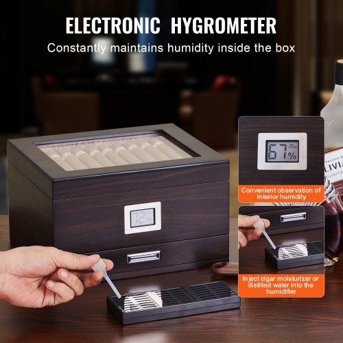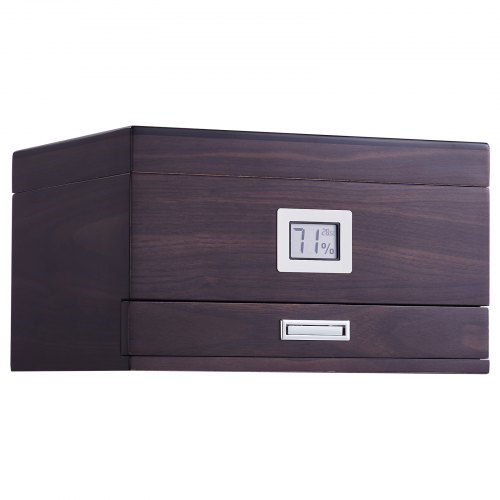 VEVOR Humidor per Sigari, Scatola Humidor con Piano in Vetro Legno di Cedro Spagnolo Fatto a Mano, Custodia per Sigari con Umidificatore Igrometro Divisore Cassetto 30-50 Sigari, Regalo per Uomini