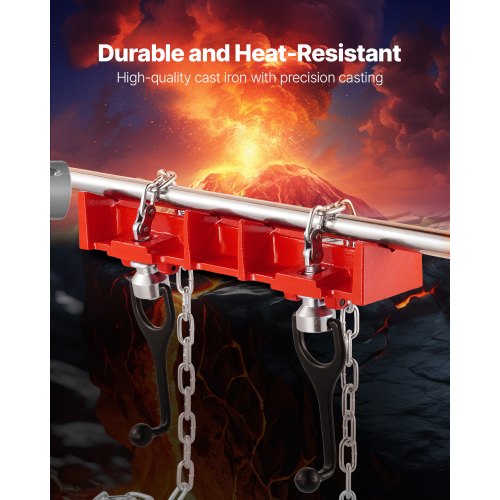 VEVOR Morsa per Saldatura Tubi, Morsetto per Saldatura Tubi da 12,7 a 203,2 mm con Doppie Catene e Manovelle, Morsa per Saldatura in Ghisa per Impieghi Gravosi per Varietà di Tubi Rosso