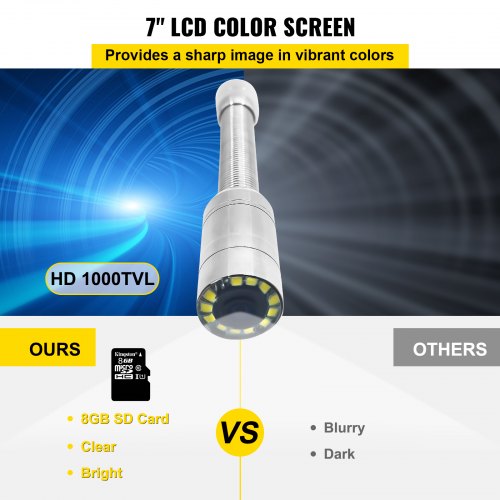 VEVOR Sonda per Videoispezione 30m Cavo Kit Telecamera di Ispezione, Endoscopio Impermeabile con Scheda 8G