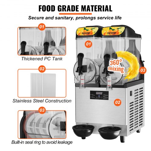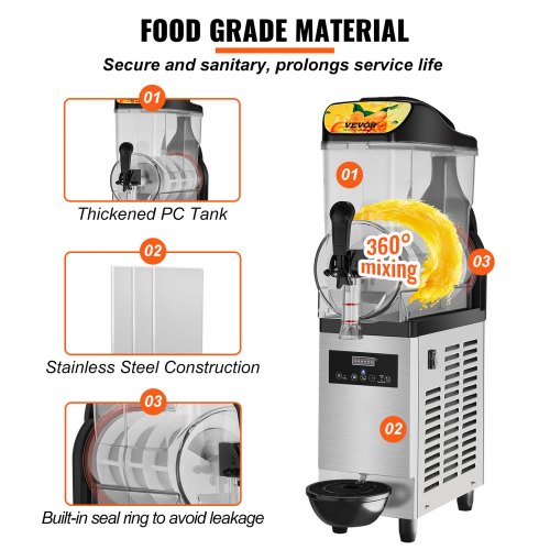 VEVOR Macchina per Granite Bevande Fredde Alcoliche Serbatoio Capacità 12L, Granitore Elettrico da Banco per Granite Bevande Succhi Ghiacciate 500W Distributore per Bevande Alcoliche Compressore 387W