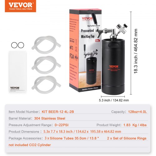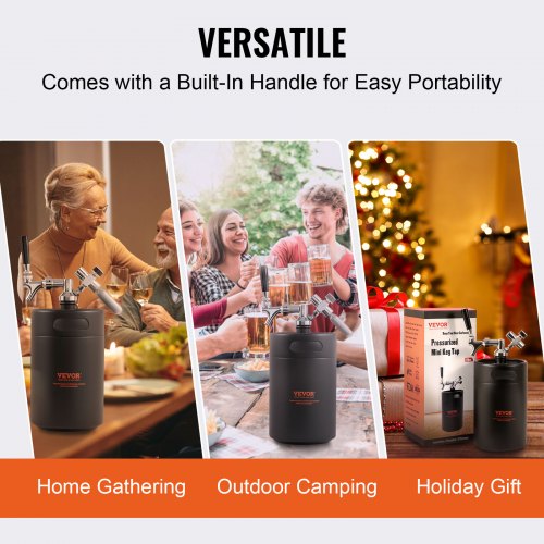 VEVOR Mini Spillatore di Birra Portatile 1,89L Dispenser Birra Artigianale 0-30PSI