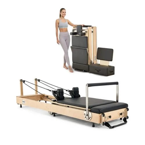 VEVOR Macchina per Riformatore per Pilates, Attrezzatura in Legno per Allenamento Forza con Doppia Resistenza, Scatola, Tavola Salto, per Utenti Avanzati Principianti Palestra, 153 kg,