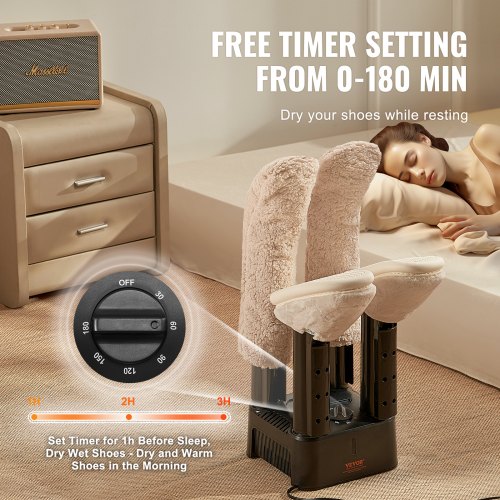 VEVOR Asciuga Scarpe Pieghevole 180° 2 Tubi, Asciuga Scarpe Portatile con Timer, Scalda Scarpe Calzatura con Soffiatore di Calore per Stivali da Neve, Scarpe di Pelle, Scarpe di Tela, Scalda Scarpe