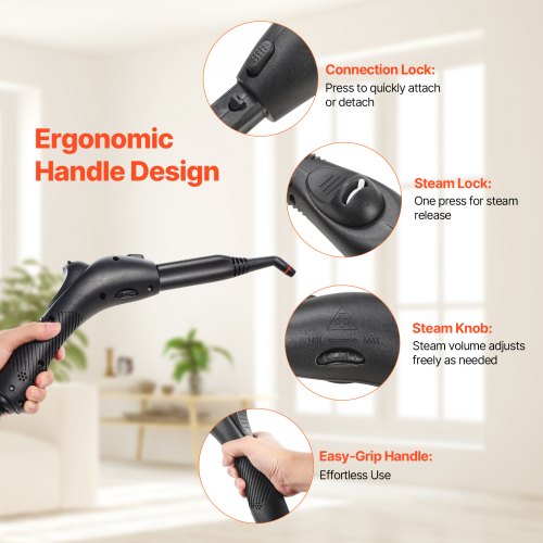 VEVOR Pulitore a Vapore, Potente Vaporizzatore Multiuso con 27 Accessori, Pulizia a Vapore con Cavo di Alimentazione Extra Lungo, Serbatoio 1,5 kg e Maniglia Portatile, per Fughe Piastrelle Pavimenti