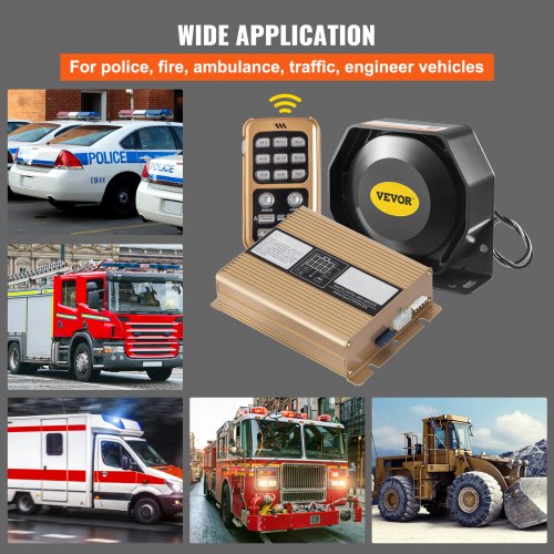 VEVOR Sistema di sirene PA con altoparlante compatto, 200 W, 9 suoni di allarme per auto, clacson senza fili, microfono portatile, sirena di allarme di emergenza per veicoli camion UTV auto