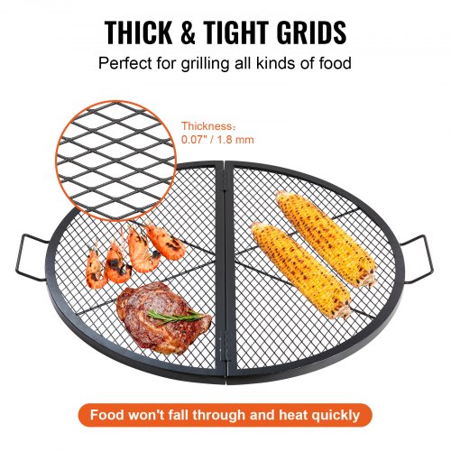 VEVOR Griglia per Barbecue in Acciaio Rotonda Portatile Pieghevole, Diametro 91 cm, Portata max. 20 kg, Materiale Utensili per BBQ Affumicatori, Braciere, Picnic, Campeggio, Viaggio, Giardino, Cortile
