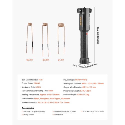 VEVOR Rimozione Bulloni Riscaldatore a Induzione, 1100 W 230 V, Strumento Portatile per la Rimozione di Dadi, Mini Macchina Riscaldante per la Rimozione di Viti Arrugginite, con 3 Bobine