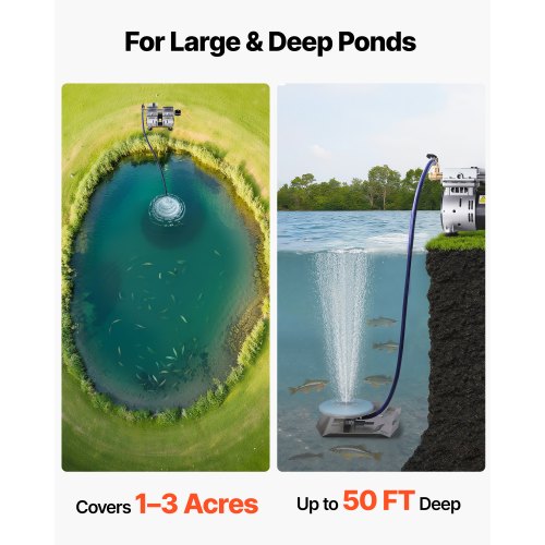 VEVOR Aeratore per laghetto, Potenza 550 W, Kit sistema di aerazione del lago 5,2 CFM per laghetto fino a 3 acri, Profondità 50 piedi compressore d'aria 2 diffusori da 80 piedi