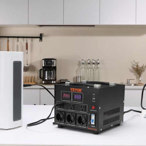 VEVOR Convertitore di Tensione Step Up/Down Portatile 110V-220V / 220V-110V Potenza da 3000VA, Trasformatore di Tensione 3000VA Portatile 270x240x215 mm 6 Spine, Convertitore di Tensione 3000VA USB 5V