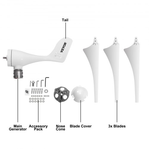 VEVOR Kit di Generatore Eolico 12V Generatore a Trifase 400W, con Controller di Ricarica MPPT e 3 Pale in Nylon, Uso nella Ricarica per Il Monitoraggio Domestico, Camper, Barche e Altro Uso Domestico
