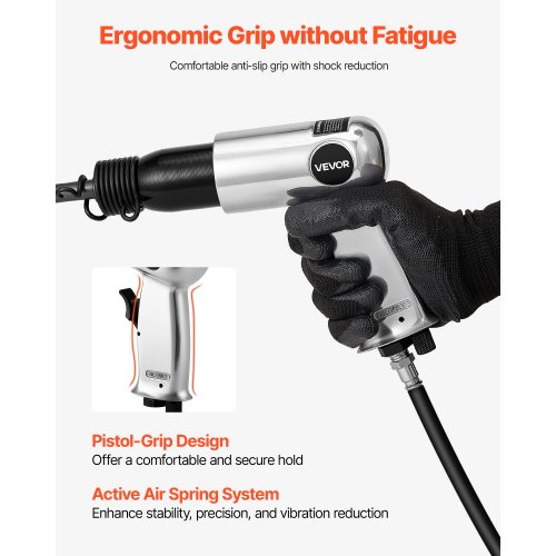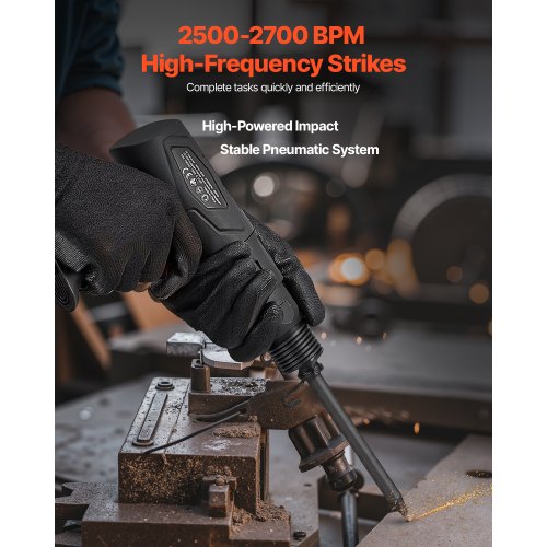 VEVOR Martello Pneumatico 2500-2700 Colpi/min., Martello Scalpellatore Pneumatico Compatto, Corsa 7 cm, 4 Scalpelli da 17 cm, per Tagliare Metallo, Demolire Muri in Cemento, Scalpellare Pavimenti