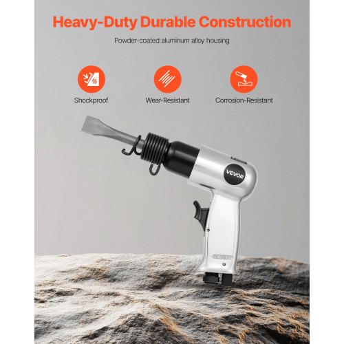 VEVOR Martello Pneumatico 3500 bpm, Scalpello Pneumatico Compatto, Lunghezza della Corsa 7 cm, con 4 Scalpelli da 12 cm, per Tagliare Metallo, Demolire Muri di Cemento, Scalpellare Pavimenti