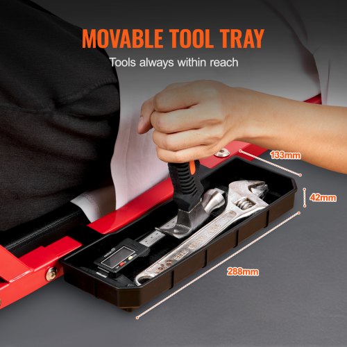 VEVOR Carrello per Garage Meccanico, 1118 mm, Capacità 136,1 kg, Carrello Auto 6 Ruote, Poggiatesta Ammortizzato Regolabile, Vassoio Portautensili, Telaio in Acciaio Resistente per Garage Officine