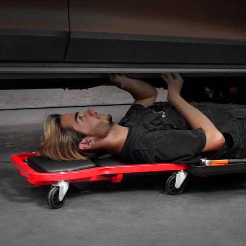 VEVOR Carrello per Garage Meccanico, 1016 mm, Capacità 136,1 kg, Carrello Auto 6 Ruote, Poggiatesta Ammortizzato Regolabile, Vassoio Portautensili, Telaio in Acciaio Resistente per Garage Officine