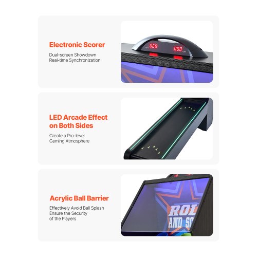 VEVOR Roll e Score Classico Tavolo da Gioco Arcade 2743 mm, per Macchina con Segnapunti Elettronico a LED, Suono, Ritorno Automatico della Palla, Sala Giochi Ricreativa 4 Palline Incluse