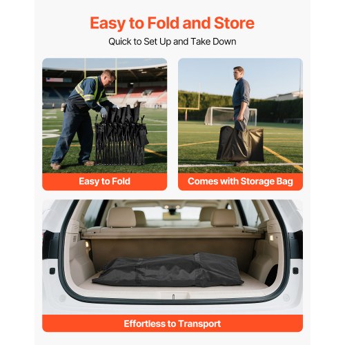 VEVOR Panca Pieghevole Portatile Pieghevole 8 Posti, Sedia da Campeggio per Esterni con Borsa per Trasporto e Schienale, Panca da Campo per Sport Calcio Pesca, Seduta Istantanea Senza Montaggio, Nero
