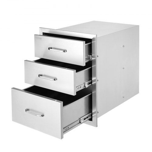 VEVOR Cassettiera per Barbecue da Esterno da 46 x 59 x 59 cm Carico di 20 kg, Cassetti per Griglia Tripli in Acciaio Inox con Maniglie, per Cucina da Esterno o Isola per Griglia da Giardino
