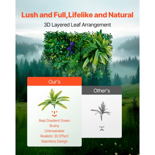 VEVOR Pannelli da Parete in Erba Artificiale, 8 Pezzi da 500 x 500 mm Pannello di Bosso Verde Combinato 3D per Decorazioni Verdi per Interni ed Esterni e Copertura di Recinzione in Edera, per Giardino