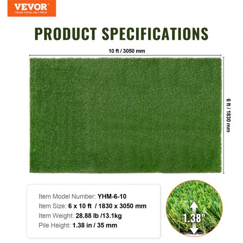 VEVOR Erba Artificiale Sintetiche Prato Finto Esterno Interno 183x305mm, Tappeto d'Erba Finta Artificiale Autodrenante 35mm Materiale in PE per Giardino, Terrazza, Parco Giochi, Decorazione Domestica