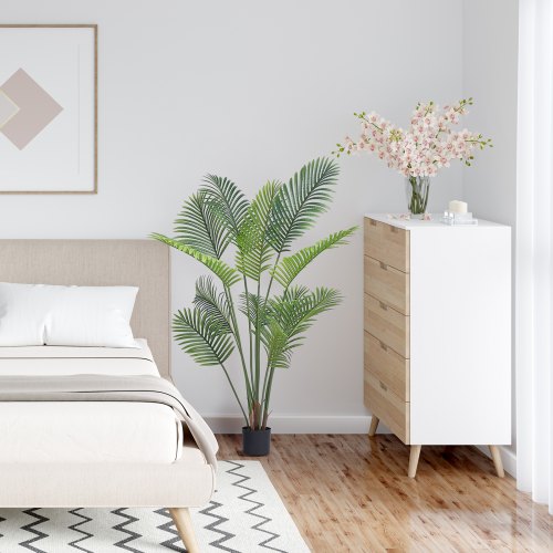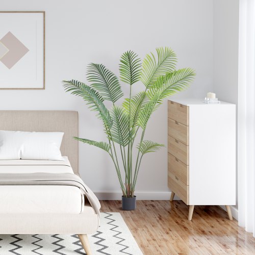 VEVOR Palma Areca Artificiale 1829 mm, Pianta Tropicale Finta con Fioriera Bianca Alta, Pianta Finta in Seta da Pavimento in Vaso, Grandi Alberi per Casa, Ufficio, Soggiorno, Interno ed Esterno