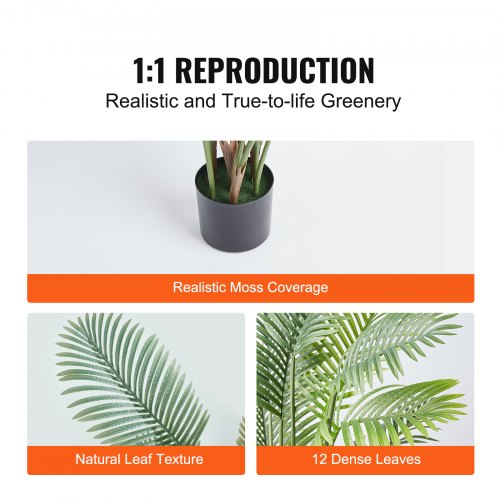 VEVOR Albero Artificiale, 1,8 m Pianta Finta Areca Palma Noce di Betel Realistica, Materiale PE Sicuro e Protezione Anti-Ribaltamento, Decorazione per Casa Ufficio Centri Commerciali Interni Esterni