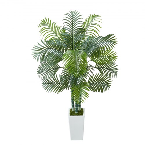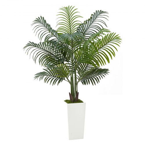 VEVOR Palma Areca Artificiale 1524 mm, Pianta Tropicale Finta con Fioriera Bianca Alta, Pianta Finta in Seta da Pavimento in Vaso, Grandi Alberi per Casa, Ufficio, Soggiorno, Interno ed Esterno