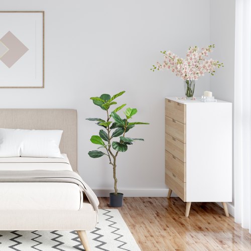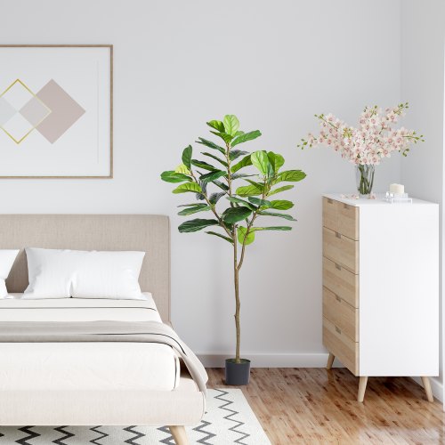VEVOR Pianta Artificiale, 121 cm Albero di Fico Foglie di Violino Finta Realistica Materiale PE di Qualità Protezione Antiribaltamento Vaso Φ150x125 mm Decorazione per Casa Ufficio Interni ed Esterni