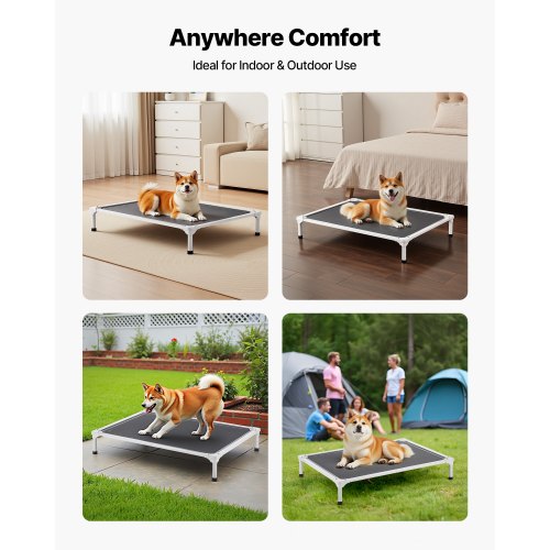 VEVOR Letto Rialzato per Cani per Cani di Grossa Taglia, Lettino Portatile Rialzato per Animali Domestici con Struttura in Tubo di Alluminio e Rete Teslin, per Interni Esterni, Taglia L, Grigio