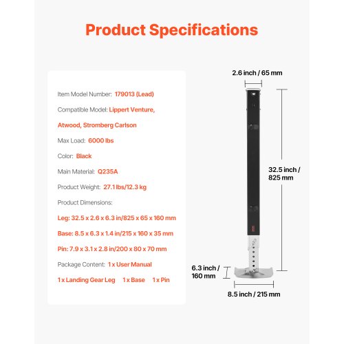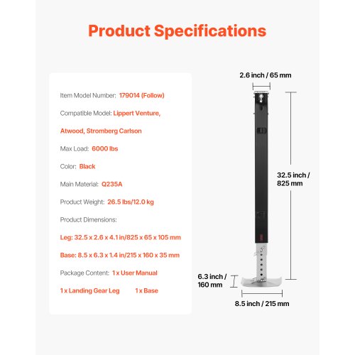 VEVOR Supporto del Carrello di Atterraggio RV Camper 179013 per RV Utensili per Atterraggio Ricambio Universale Compatibile con Sistemi Lippert Venture, Atwood, Stromberg Carlson, Nero