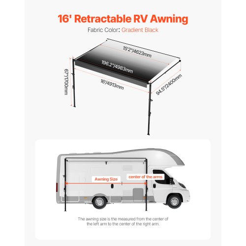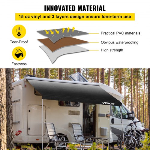 VEVOR Tenda da Sole di Ricambio Impermeabile in Vinile per Camper, Tenda da Sole Retrattile Modulare con Telaio in Lega di Alluminio, Nero Sfumato, Manuale 4876 mm Adatta Maggior Camper