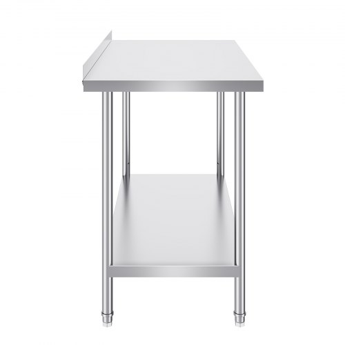 VEVOR Tavolo da Lavoro in Acciaio Inossidabile 610 x 711 x 660 mm Tavolo da Lavoro Commerciale per Preparazione degli Alimenti con Alzatina su 3 Lati, con Altezza Regolabile per Casa Ristorante Hotel