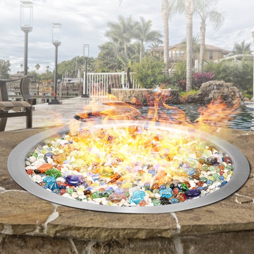 VEVOR Braciere da Incasso Rotondo 24 pollici, Kit Bruciatore per Braciere in Acciaio Inossidabile, Braciere a Gas Naturale Propano Potenza 92000 BTU per Uso Interno Esterno, Kit Bruciatore Braciere