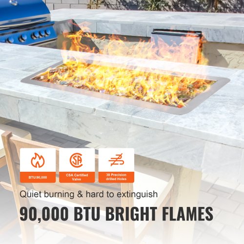 VEVOR Braciere da Incasso 152,4 mm x 457,2 mm, Kit Bruciatore per Braciere in Acciaio Inossidabile, Braciere a Gas Naturale Propano Potenza 90000 BTU per Uso Interno Esterno, Kit Bruciatore Braciere