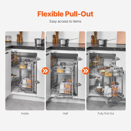 VEVOR Organizzatore Estensibile per Armadio, 356 x 533 mm Cassetto per Armadio, Ripiano Estraibile con Meccanismo di Chiusura Ammortizzata, Montaggio sul Fondo e Laterale, per Cucina, Dispensa, Bagno