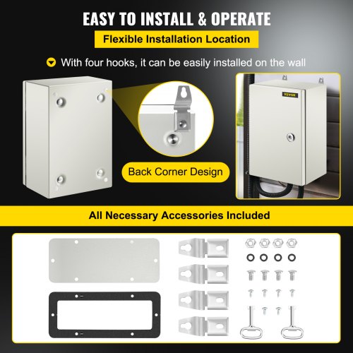 VEVOR Custodia in acciaio NEMA, scatola elettrica in acciaio NEMA 4X, 50x40x20 cm, IP66 impermeabile e antipolvere, scatola di giunzione elettrica per esterni/interni, con piastra di montaggio
