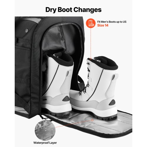 VEVOR Zaino da Viaggio per Scarponi da Sci, Zaino da Sci da 65 L per Uomo e Donna, con Esterno e Fondo Impermeabili, Resistente Oxford 1680D, per Snowboard, Casco, Occhiali, Guanti, Nero