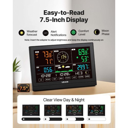 VEVOR Stazione Meteorologica Solare Connessione WiFi da Esterni Schermo a Colori 19 cm (7.5-inch) Funzione 7 in 1, Stazione Meteo Display 19 cm Distanza di Trasmissione da 150m, Stazione Meteo Solare