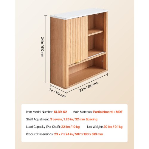 VEVOR Mobiletto da Bagno Pensile con 2 Ante e Ripiani Regolabili, Mobiletto Portaoggetti Pensile per Bagno con Divisorio Aperto e Cassetti per Cucina WC in Truciolare, 610 x 230 x 637 mm