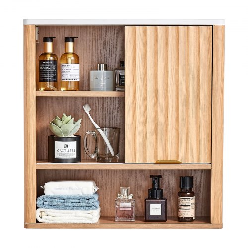 VEVOR Mobiletto da Bagno Pensile, Armadietto Bagno Sospeso da Parete con Porta Scorrevole e Ripiani Regolabili, 3 Livelli di Altezza, Mobiletto da Parete con Divisorio Aperto per Cucina, Lavanderia