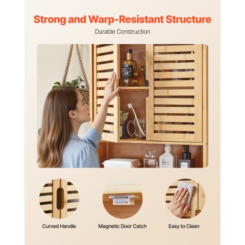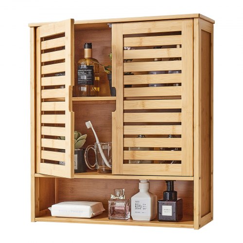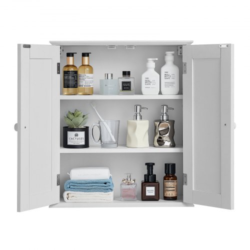 VEVOR Mobiletto da Bagno Pensile con 2 Ante e Ripiani Regolabili, Mobiletto Portaoggetti per Montaggio a Parete, Armadietto da Bagno da Parete Sospeso con 3 Scomparti Aperti per Cucina e WC