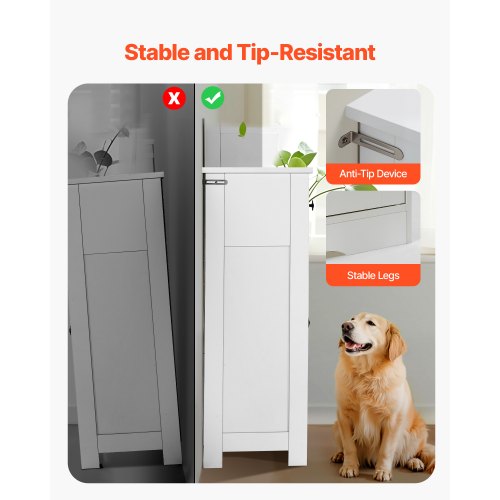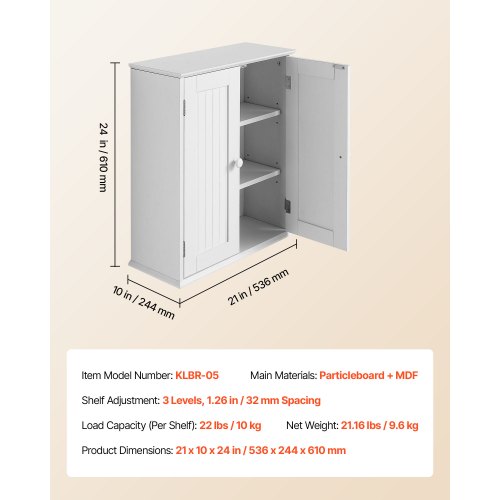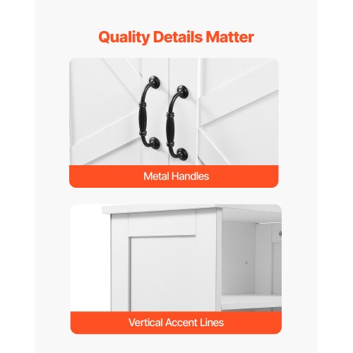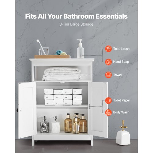 VEVOR Mobiletto da Bagno a 3 Ripiani con 2 Ante Ripiano Regolabile, Credenza da Pavimento per Cucina Soggiorno Ingresso, Armadietto Multifunzionale da Cucina, Bianco