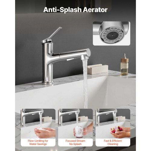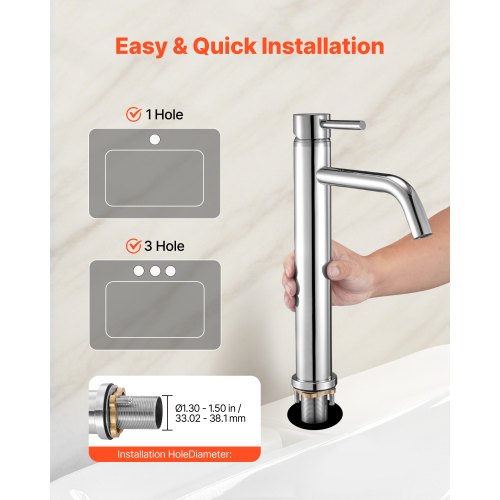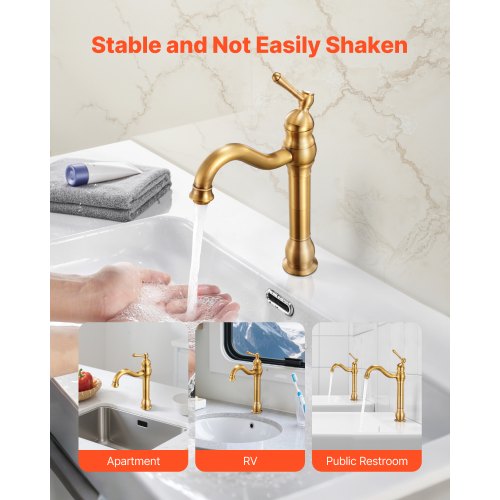 VEVOR Rubinetto Monocomando per Lavello, Rubinetto Miscelatore in Ottone Massiccio Design Antiriflusso Scarico a Pulsante per Lavello da Cucina, Miscelatore per Acqua 1 o 3 Fori per Bagno, Bar