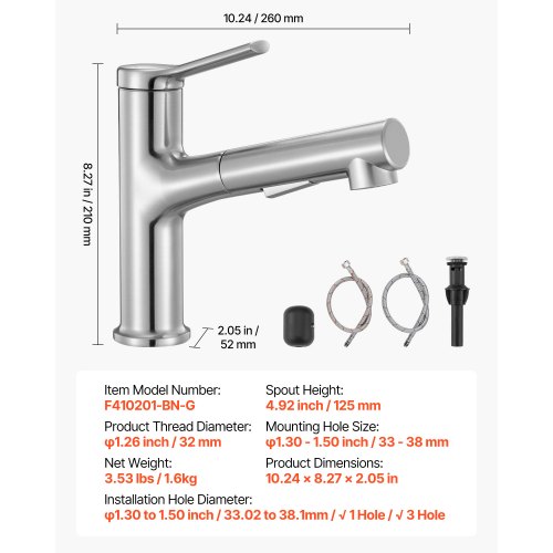 VEVOR Rubinetto Monocomando per Lavello da Cucina, Rubinetto Miscelatore con Beccuccio Estraibile per Lavello da Cucina, Miscelatore per Acqua 1 o 3 Fori per Bagno in Acciaio Inox, Bar