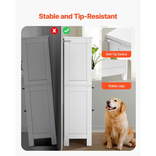 VEVOR Mobiletto da Bagno Autoportante a 4 Ripiani con 2 Ante Ripiano Regolabile, Credenza da Pavimento per Cucina Soggiorno Ingresso, Armadietto da Cucina, Bianco