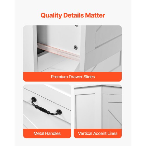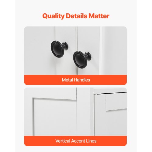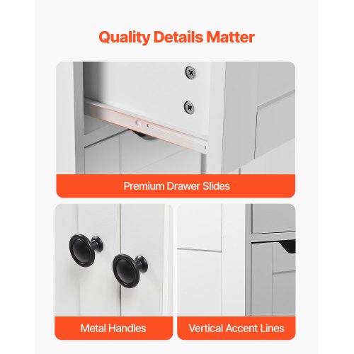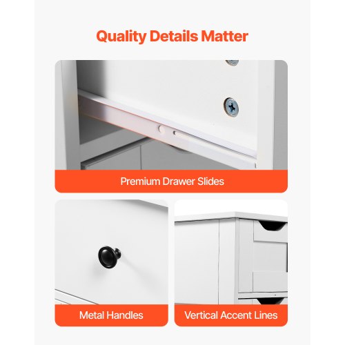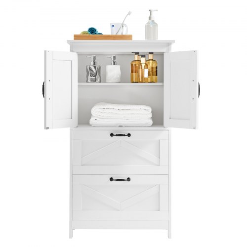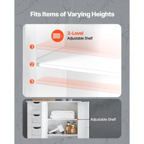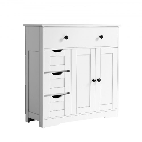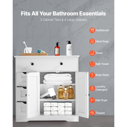 VEVOR Mobiletto da Bagno a 3 Ripiani Autoportante con 2 Ante 4 Cassetti Ripiano Regolabile, Armadietto da Pavimento per Cucina Soggiorno Ingresso, Mobiletto da Cucina Bianco